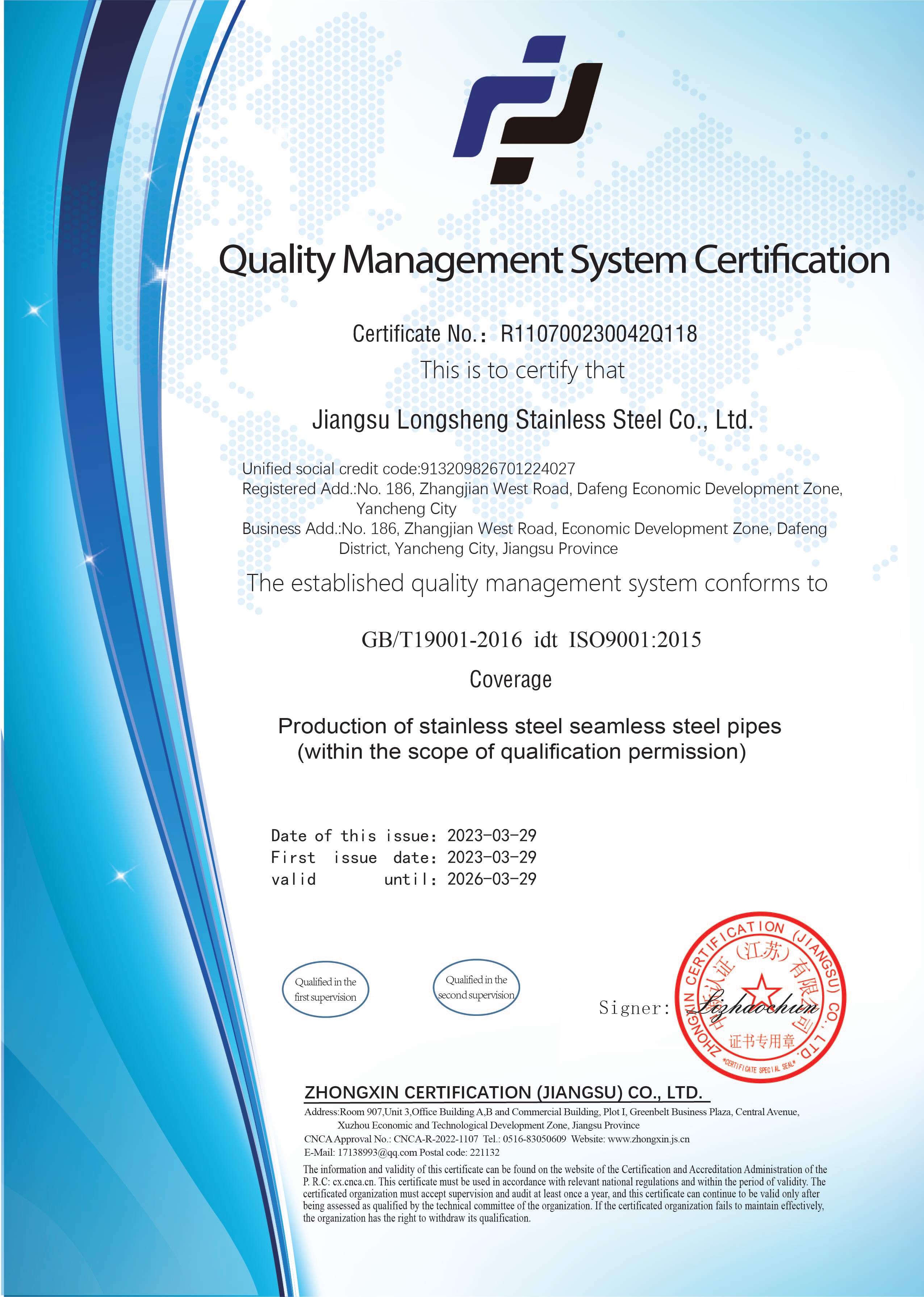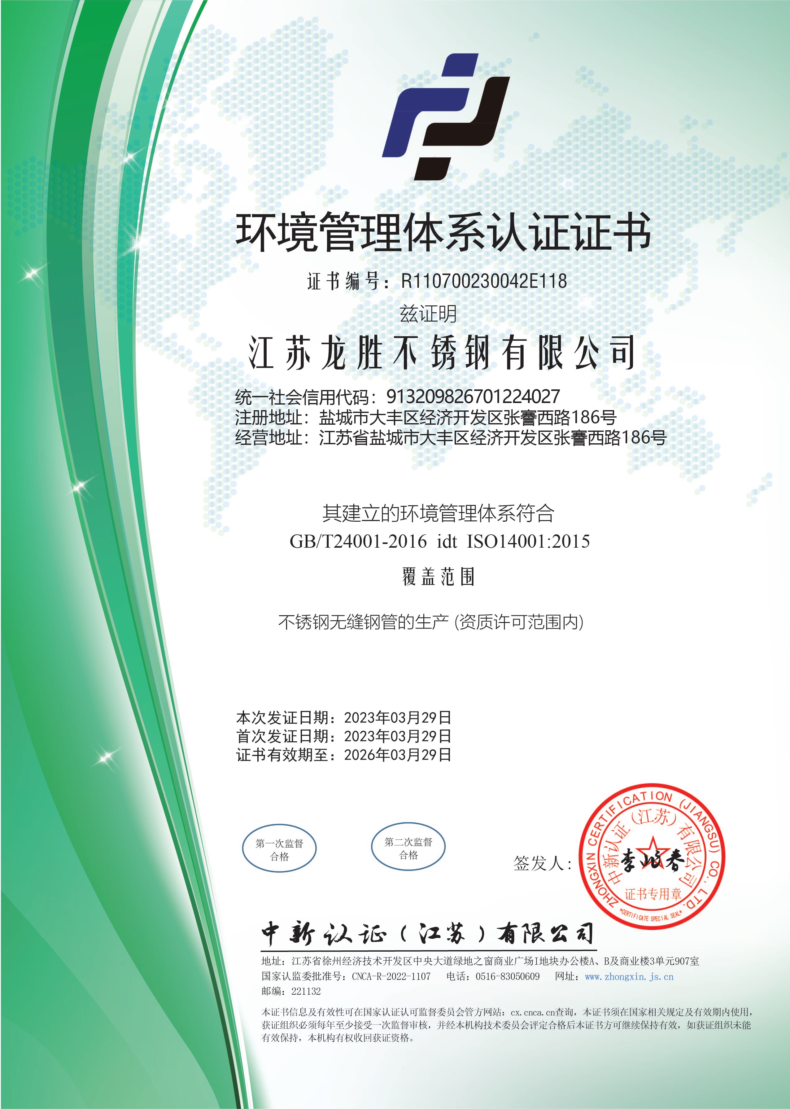江苏龙胜不锈钢有限公司成立于2007年。公司坐落于黄海之滨的麋鹿之乡江苏省盐城市大丰经济开发区,总占地面积200余亩,总投资3亿元,年产不锈钢钢管2万吨,年销售收入超4亿,是“长江三角洲”地区不锈钢产业链加工、仓储、物流、销售为一体的重点基地
